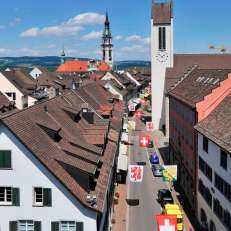 Join Fredy Meier and Christof Kaiser on a tour of the Catholic town church of St. Nicholas. You will learn exciting facts about the venerable church bells and enjoy the view over Frauenfeld from the balcony of the church tower.