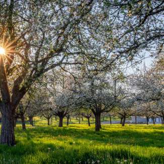 During "Bluescht," the fruit tree blossom season in spring, the canton Thurgau on Lake Constance is transformed Thurgau Switzerland's most beautiful blossom paradise. Madame Bluescht knows the best restaurants and pubs to visit after a trip through the sea of delicate pink blossoms. The flower lady provides restaurant and activity tips below or is happy to give them in person on +41 71 531 01 30.