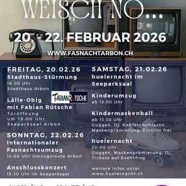 Die Fasnachtsgesellschaft Lällekönig lädt zum traditionellen Lälle-Obig ein. Nebst dem Programmchef Dave steht auch die Lällekönigin Katja, Alt-Stadtpräsident René, Alt-Hofnarr Jürg und der 11er Rat auf der Bühne. Für weiteres Lachmuskeltraining sorgt Fabian Rütsche. Nebst Speis und Trank fehlt auch die musikalische Unterhaltung nicht, unsere Arbor Felix Hüüler und aus St.Gallen WIRUS sorgen für Stimmung und Bewegung. Lasst euch überraschen – was unter dem Motto WEISCH NO…