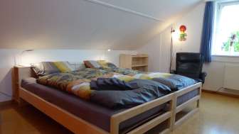 B & B 22 - Zimmer & Zmorge is located in a cozy detached house in Kreuzlingen. Two double rooms on the upper floor offer space for up to four people. On the floor reserved exclusively for guests, there is a bathroom and a small sitting area where a hearty breakfast is served. Bread, yogurt, jam and some other products are homemade, fresh and delicious. Wherever possible, attention is also paid to regionality and seasonality. The rooms can also be booked as single rooms or without breakfast. Families with children are welcome. The garden with two seating areas, barbecue, hammock and table tennis table can also be used.
