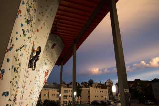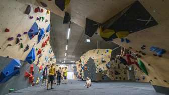 The unique sports center offers more than 200 indoor and outdoor climbing routes from easy to very difficult, 5 badminton courts and a top modern bouldering hall.