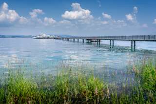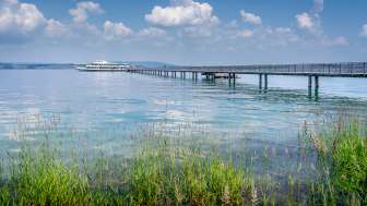 The longest jetty on Lake Constance, at almost 300 meters, is particularly impressive and is also affectionately known as the "stem" of the apple village. You can jump into the water via a small platform attached to the jetty and sunbathe on the raft. Public barbecue areas invite you to grill sausages together. Sanitary facilities with toilets, showers and changing rooms provide comfort. The bathing beach is easily accessible by train and boat, on foot or by bike, and there are parking spaces available nearby.