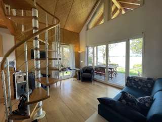 Two large meadows right on the shore provide shade and invite you to enjoy. Cozy barbecue evenings can be spent at the open fireplace and at the dining areas with panoramic views.