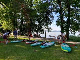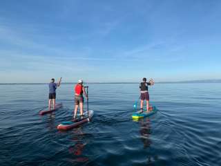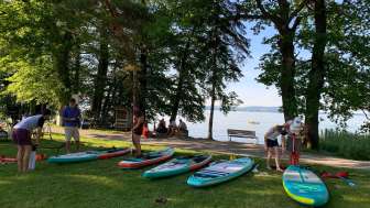At the bathing beach in Kesswil, Lake Constance is a wonderful place to canoe and SUP in and out.