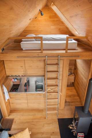 This unique retreat in the trees offers a wonderful view of the Thur river valley and the typical old Thurgau apple trees. On 23 m² you will find modern comfort and a stylishly simple ambience. The tree house is equipped with everything you need: Shower, WC, double bed, small kitchen with fridge, wood-burning stove and terrace.