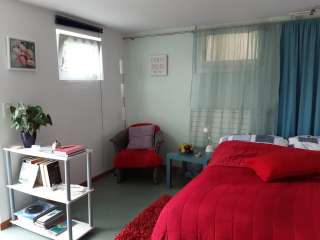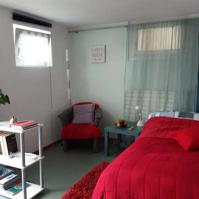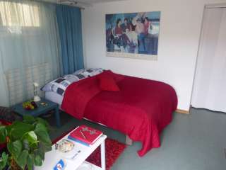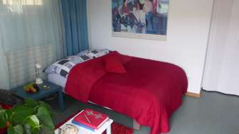 A cozy double room with its own large bathroom awaits you in a quiet, green residential area.