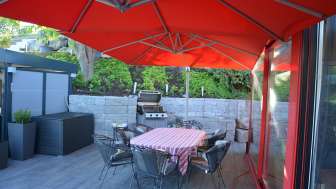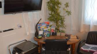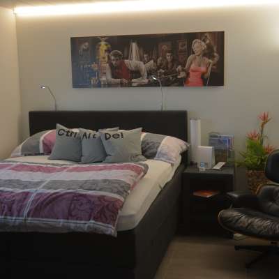 This modern studio is located in southern Thurgau, in the region of Wil near St. Gallen. It delights with its comfortable furnishings. It has its own entrance, seating area and large-screen TV. Tense backs are pampered by a whirlpool, box-spring bed, massage chair and massage shower. The studio is also equipped for working from home and has the latest electronic equipment. In summer, you can make yourself comfortable on the sunny terrace. Working is also possible here. A heated pool invites you to swim. A coffee machine, tea maker and fridge are available. Various snacks and drinks are available for a fee, although non-alcoholic drinks are on the house. In addition to breakfast, lunch or dinner is also available on request. A barbecue and dining table can also be used. Despite the quiet location on the outskirts of Sirnach, public transport is close by. You can reach Wil, St. Gallen or Zurich Airport within 10 to 30 minutes by car.