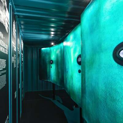 The three-dimensional Lake Constance illuminated structure inside the container provides exciting insights into the transport history of Romanshorn, Bregenz, Lindau, Friedrichshafen and Kreuzlingen/Constance through various peepholes. The walk-on access to the container roof provides a real all-round view of the various players. Guests can also leave their mark on a special chalkboard wall.