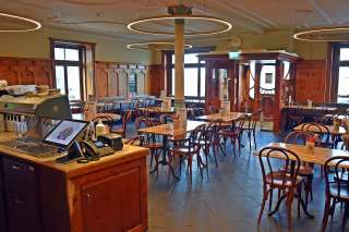 The Sternenbeiz is furnished with lots of wood and invites you to enjoy your meal. The beer specialties are accompanied by classic dishes such as yeast dough pancakes, quark dough doughnuts, bagels, brewery burgers, Munich white sausage and beer sausage.