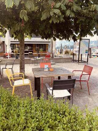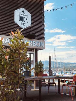 The DOCKeins is an informal and cozy meeting place in Arbon directly on the lake. Here, beach runners, sun worshippers, sea danglers, sunset revelers, sea bears, mermaids, landlubbers, lifeguards and freshwater pirates are pampered.