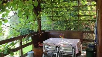 The covered veranda offers a wonderful view of the Sittertal river landscape. There is a corner bench and table on the veranda where you can linger in good weather. The charcoal grill can also be used.