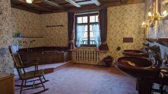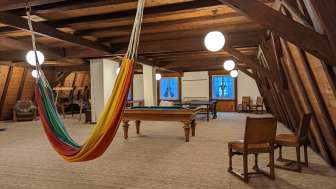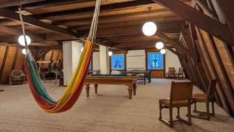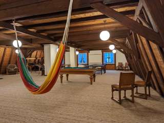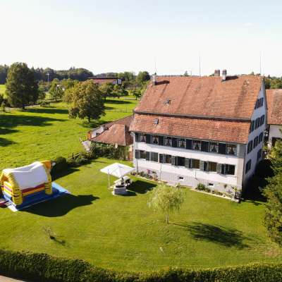 The Schlössli Herrenhof in Langrickenbach was built in the 18th century as the residence of an influential family, but fell into disrepair after several changes of ownership. A family of entrepreneurs from Kreuzlingen bought it and restored it. Today, Schloss Herrenhof is available to guests as an event venue and splendid accommodation. There are five double rooms in the main building, one of which is on the top floor with a view of Lake Constance. The historic potato cellar is suitable for celebrations such as weddings or birthday parties with a special ambience. A huge fireplace (barbecues are allowed) and historic furnishings with lots of wood create a cozy, rustic atmosphere. A gaming room with table tennis, billiards and other games as well as a huge garden with a gas barbecue and plenty of privacy complete the recreational fun. The adjoining building offers space for ten additional guests in a mass sleeping area. The hosts live on the first floor. Nevertheless, 600 square meters remain in the Schlössli for the exclusive use of the guests.