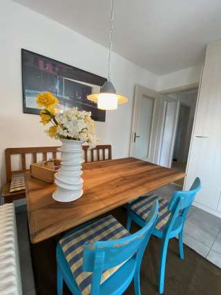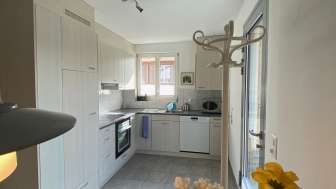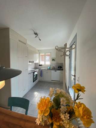 The hosts are two humorous, open and helpful people who live in the same building. The separate entrance via an external spiral staircase leads directly into the cozy and well-equipped eat-in kitchen. There you will find a microwave and a capsule coffee machine with a selection of capsules per night. There is also a selection of spices, tea, vinegar and oil.