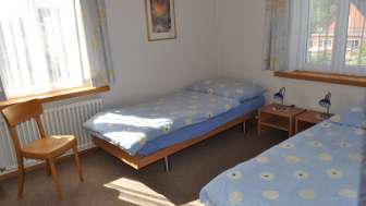 The apartments each have 2 bedrooms with 2 beds. The living room is equipped with a TV. The apartments also have a shower/WC and a kitchen with dining table. A washing machine and tumble dryer are available.