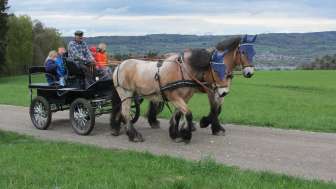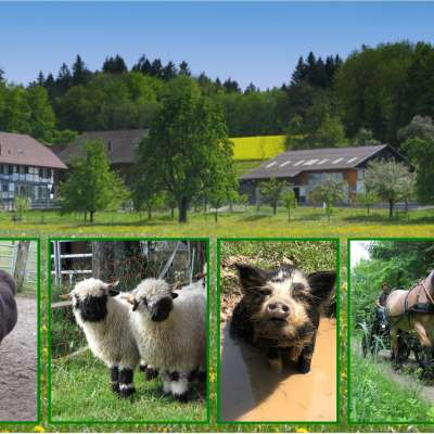 Horses, donkeys, Valais black-nosed sheep, Kune-Kune pigs and cats make the farm a lively place where you can experience farming up close. Children can groom donkeys, take them for walks through the forest or help look after the animals. The woolly sheep love to be cuddled, while the pigs provide some light-hearted moments. A special experience is a carriage ride with the impressive cold-blooded horses, which opens up impressive views.