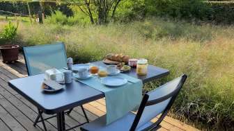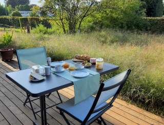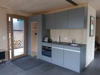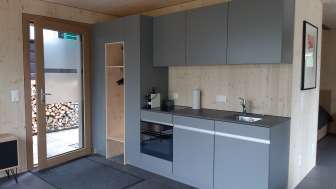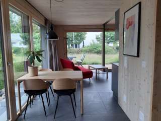 This detached small vacation apartment is flooded with light thanks to two window fronts and delights with a view of a spacious wild garden. A private seating area facing south, lots of wood inside and out and stylish furnishings invite you to spend cozy hours away from the hustle and bustle of everyday life. The bedroom with double bed and the living room with sofa bed can accommodate up to four people. A well-equipped kitchenette, dining area and bathroom, free parking and WiFi are available to vacation guests. Two folding bicycles invite you to discover the region, while children's toys for shared use keep younger visitors entertained.