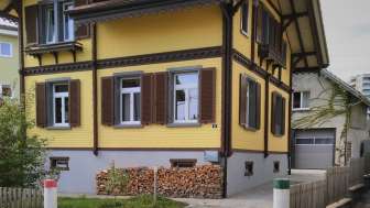 The "Wilder Wein" guest apartment in Romanshorn is located in a building surrounded by wild vines.