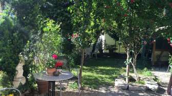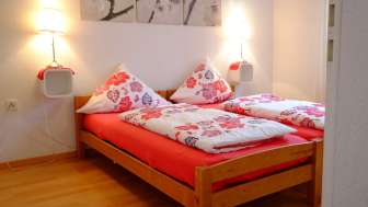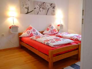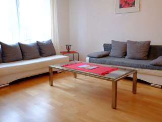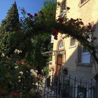 The spacious, partly newly renovated vacation apartment is located on the mezzanine floor of the listed art nouveau building. The apartment, consisting of a double bedroom, open-plan bed-sitting room, kitchen-cum-living-room, reduit with wardrobe, shower, WC, washbasin, offers space for 2 to 5 people. The location is central, quiet, sunny, with garden seating area and barbecue, sunbathing lawn, smoking balcony, permanent parking space, covered bicycle shelter (shelter also in the cellar), TV, washing machine for longer stays and Internet on request.
