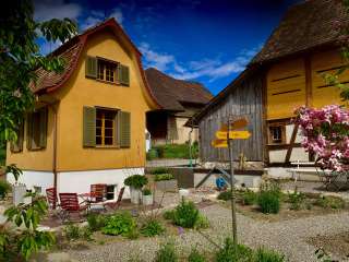 The detached Häxehüsli has no direct neighbors. Its outdoor area enchants guests with a natural garden, large seating area, antique furniture and a herb garden. You can barbecue over the open fire and the young town stream babbles nearby.