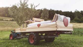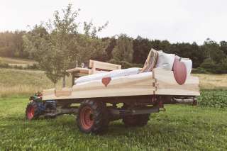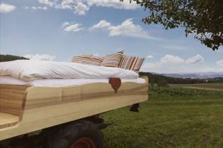 Once a welcome relief for farmers, today a creative overnight accommodation: Thurgau Tourism's latest four-poster bed has been created on the wagon of a Rapid Special.