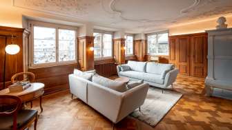 The five spacious Jacob 1808 vacation apartments for two to four people are located in two houses in the heart of the historic baroque town of Bischofszell. They were home to cloth merchants, master saddlers, innkeepers and even Bischofszell town councillors. This historical heritage, and thus the soul of the houses, was preserved during the careful renovation with the help of the Office for the Preservation of Historical Monuments. Instead of dividing walls, passageways were created between the two houses so that they present themselves as a unified whole. Historic monastery tiles, creaking floorboards, impressive stucco ceilings and wood paneling, paired with modern furniture, bathrooms and kitchens, create a wonderful composition of historical elements and stylish contemporary comfort.