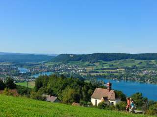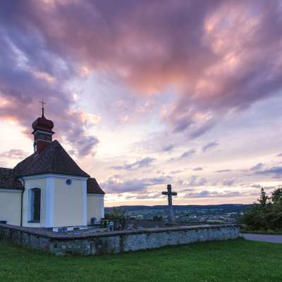 A 10-minute walk from the chapel takes you to the Hochwacht vantage point, which offers impressive views of the Untersee region. The predestined location of the Hochwacht has been used for centuries to keep a lookout in all directions in case of danger. A concrete bunker is a reminder of the World War II years. The barbecue area and benches are popular with families.