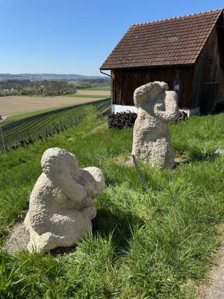 On the Art & Wine Experience Trail on the Iselisberg, visitors can discover sculptures by well-known artists in combination with wine and background information about its cultivation. From the beginning of May to the end of October, 23 sculptures line the hiking trail up the Iselisberg, a well-known wine-growing area in the Frauenfeld region. The signposted, two-hour circular trail leads from Uesslingen via Dietingen to Iselisberg and treats hikers to tranquil nature and picturesque views of the Thur Valley and the Alps. Information boards along the way tell you about the excellent wine that is grown here. And of course: the proof of the pudding is in the eating. The fine wines are best tasted in person at a winegrower's or in a restaurant along the way.