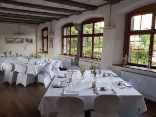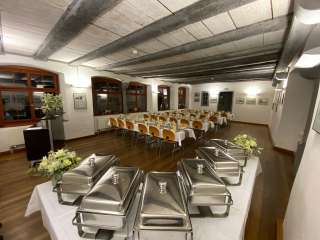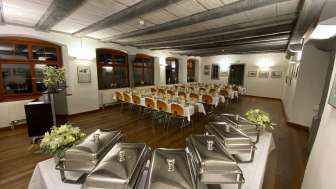 The museum's historic vaulted cellar and the adjoining inner courtyard with its baroque garden and the "Schniderbudig" cottage are now used for celebrations and meetings. More than 400 years ago, the Schniderbudig was a cloth house for the canvas trade. Today it is available for events and offers furniture for up to 70 people as well as a professional kitchen.