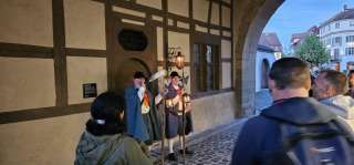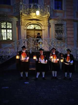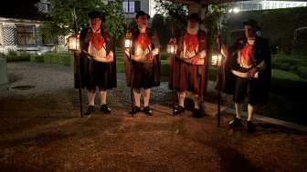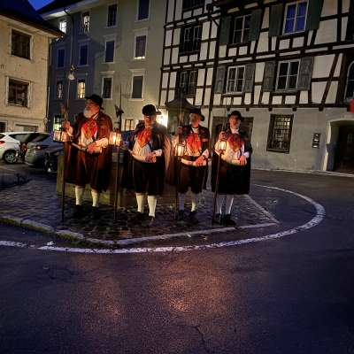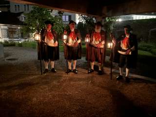 Nevertheless, the tradition lives on in Bischofszell. From April to October, the night watchmen walk through the alleyways of the town on the evening before the new moon, accompanied by two watchmen, following the route description of the old night watchman's oath. In addition to the sung call of the hour, stories from old Bischofszell can be heard. The night watchmen and doormen appreciate being accompanied by guests on their tours. The tour lasts 1 ¼ hours and takes place in all weathers.