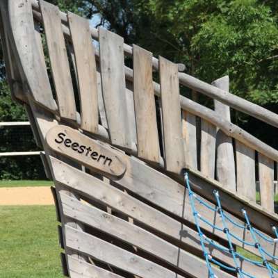 The pirate ship "Starfish" represents a ship that has broken apart in the middle and is virtually stranded, inviting visitors to balance, climb and slide. Creativity as a key function of life finds its place here.