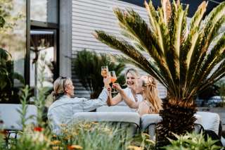 The Krone restaurant is located in the Thurgau apple village of Altnau directly on Lake Constance. It is divided into two parts. Inside, guests can expect a stylish fine dining restaurant with modern cuisine featuring many regional products and creative vegetarian and vegan dishes. The wine list shines with excellent wines from Thurgau, but also from Switzerland and Europe. The second part outside is called "Krone Easy". This is a convivial summer terrace with simple menus for self-service or take-away. Here, orders can be placed and collected on site, online from the Altnau beach next door or even by boat. Both parts of the Krone, restaurant and terrace, have one thing in common: the wonderful view of the lake. The Krone is also an ideal starting or finishing point for excursions around and across Lake Constance. The Altnau Apple Trail, a themed trail about the red-cheeked fruit for which Thurgau is so famous, starts above the village.