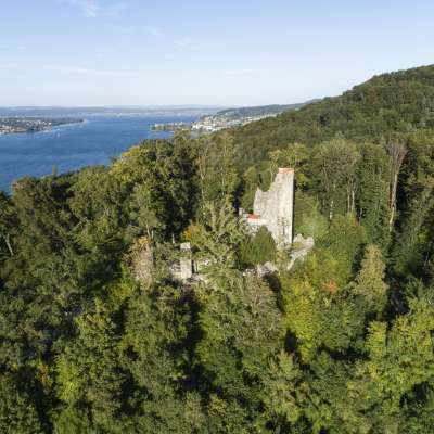 The history of what was once the largest castle on Untersee is vividly explained on two display boards. Driving is prohibited on the road to the castle, so it can only be reached on foot.