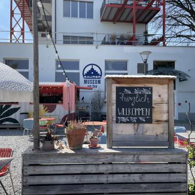The mixture of the urban ambience of the former industrial area behind and the Arbon lake promenade in front make the Saurer Garten a favorite place. Guests enjoy a wide and attractive range of drinks. From morning coffee to aperitifs and refreshing drinks, everything is available here. The food truck also offers delicious snacks. There is also a sandpit for children to play in. The industrial building behind the garden houses the Saurer Museum. It shows the impressive history of Adolf Saurer AG, which for a long time was the most important Swiss manufacturer of trucks and later also of textile machines. Production took place at the site that now houses the museum. A vehicle from the Saurer success story is also on display in the Saurer Garden - a converted Postbus. The highlight for children: they can take a seat in the driver's seat. The old Saurer bus can be hired for private parties or provides space for drinks and an aperitif platter in dubious weather. Events such as children's birthday parties, a fondue party or a private music session can also be organized.