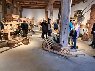 An overwhelming variety of over 10,000 objects are exhibited in the granary of the former Dominican convent. Visitors can witness the way of life and work in great-grandmother's time in an impressive way. On 2,700 square meters, visitors can immerse themselves in the world of our ancestors. What motivated horse owners to hang a piece of engraved deer antler on their carriage? Why was a scissors motif pressed into a roof tile? On guided tours, visitors learn fascinating stories from a time without robotic lawnmowers, induction stoves and cell phones. They can also marvel at the largest historical wooden barrel in Switzerland, a 45,000-liter giant from 1759 from Mostindien.