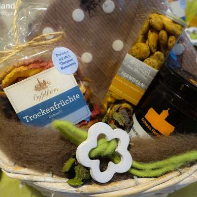 Schlaraffenland is the specialist for delicacies from the region and offers wines, beers, distilled water, oil and vinegar, tea, cheese, jams, chutneys, honey, dried fruit, Hüppen and many gift ideas.