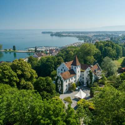 A place where care is a top priority: in dealing with guests, in the architectural design, in hotel operations, in the selection and preparation of food, and also in dealing with nature. In combination with a long and eventful history, this creates a very special atmosphere - both for concentrated work and for enjoyable relaxation. A place where space and security come together. All products are organic. In the castle restaurant with a green Michelin star and 13 GaultMillau points, guests can choose from garden-fresh, creative dishes for lunch and dinner. A highlight of the organic restaurant is the inviting garden terrace with atmospheric views of the English Park and Lake Constance. Schloss Wartegg has electric car charging stations.