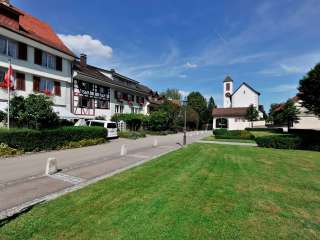 The parish church of St. Bartholomew is located inside the late Roman fort Ad Fines and is one of the oldest churches in Thurgau.