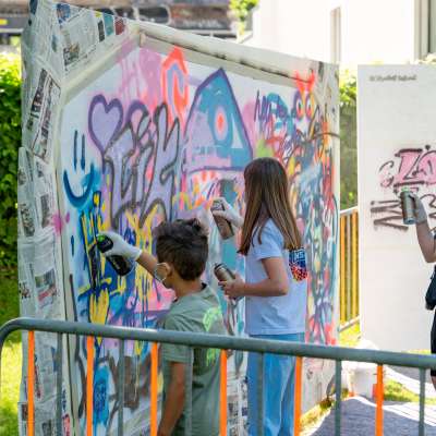The graffiti workshop is suitable for participants from the age of 9, the sticker workshop from the age of 4.
