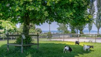 In the large garden with many fruit trees there is a varied playground and animals invite you to linger. Here, hikers and cyclists from the Lake Constance trail can take a breather, buy a regional delicacy in the farm store and forget everyday life. Younger guests can romp around and build sandcastles in a colorful jumble of toys. Bleating goats love to be stroked and hopping rabbits wait for a dandelion from a child's hand.
