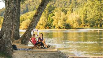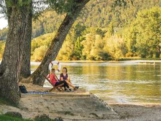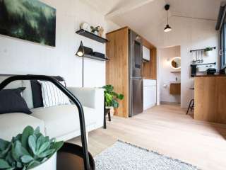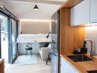 The smart Tiny House "listens" to the guest's wishes and offers so much: the room key, for example, is sent to your cell phone. If you want light, all you have to do is say it out loud. If you want to watch TV, you can do so via a modern app on the hotel's own tablet, your personal Spotify playlist can be played through the speakers in the cottage and a large screen on the fridge can be used as an information element for tourist information. The campsite is located directly on the Rhine and is the ideal starting point for countless hiking and cycling tours along the water. The country inn offers excellent cuisine and the attractive location for nature lovers makes every stay a wonderful vacation. On hot summer days, the campsite's own beach invites you to take a dip in the cool water.
