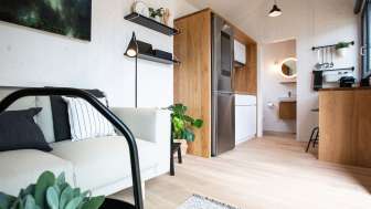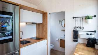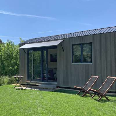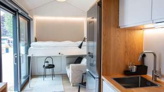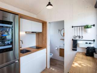The Tiny House at Wagenhausen campsite provides a technical and stylish contrast to the nature-focused stay in the green, gentle Thurgau and invites you to discover the latest possibilities of the digital world.