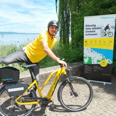 Explore the Kreuzlingen region against the backdrop of Lake Constance comfortably and ecologically: This is possible with the honey-yellow Regivelo at 20 rental stations.