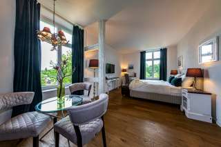 The building was extensively renovated and extended by the new owner in 2019 under the supervision of the Canton of Thurgau 's heritage protection office and will be reopened as a vacation residence for short and long-term vacationers from summer 2019. All 8 apartments have a size of approx. 30 m², spacious bathrooms, kitchenette and high-quality, contemporary hotel furnishings. Villa Tägermoos is managed by Trompeterschlössle Hotel & Residenz am Seerhein.