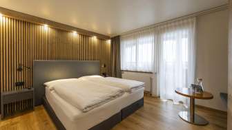 The spacious wellness area features a sauna, infrared sauna, hot tub, and relaxation room, as well as massage and beauty treatments. The offerings are complemented by fitness facilities, nutritional counseling, and body composition analysis. The hotel’s location in Thurgau Lake Constance allows for a wide range of activities in a popular region, with numerous cycling routes starting right at the hotel. Charging stations for electric cars and e-bikes highlight the modern infrastructure.
